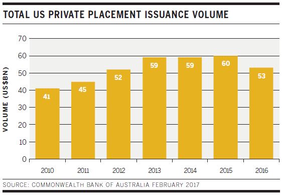Australasian-origin issuance in USPP format was also down – at US$5.9 billion, the figure for 2016 was similar to the domestic market total. But the DMU suggests that Australasian credits “remained highly sought after” by USPP investors in 2016, which supported growth in average Australasian deal size to US$350 million from US$289 million in 2015.